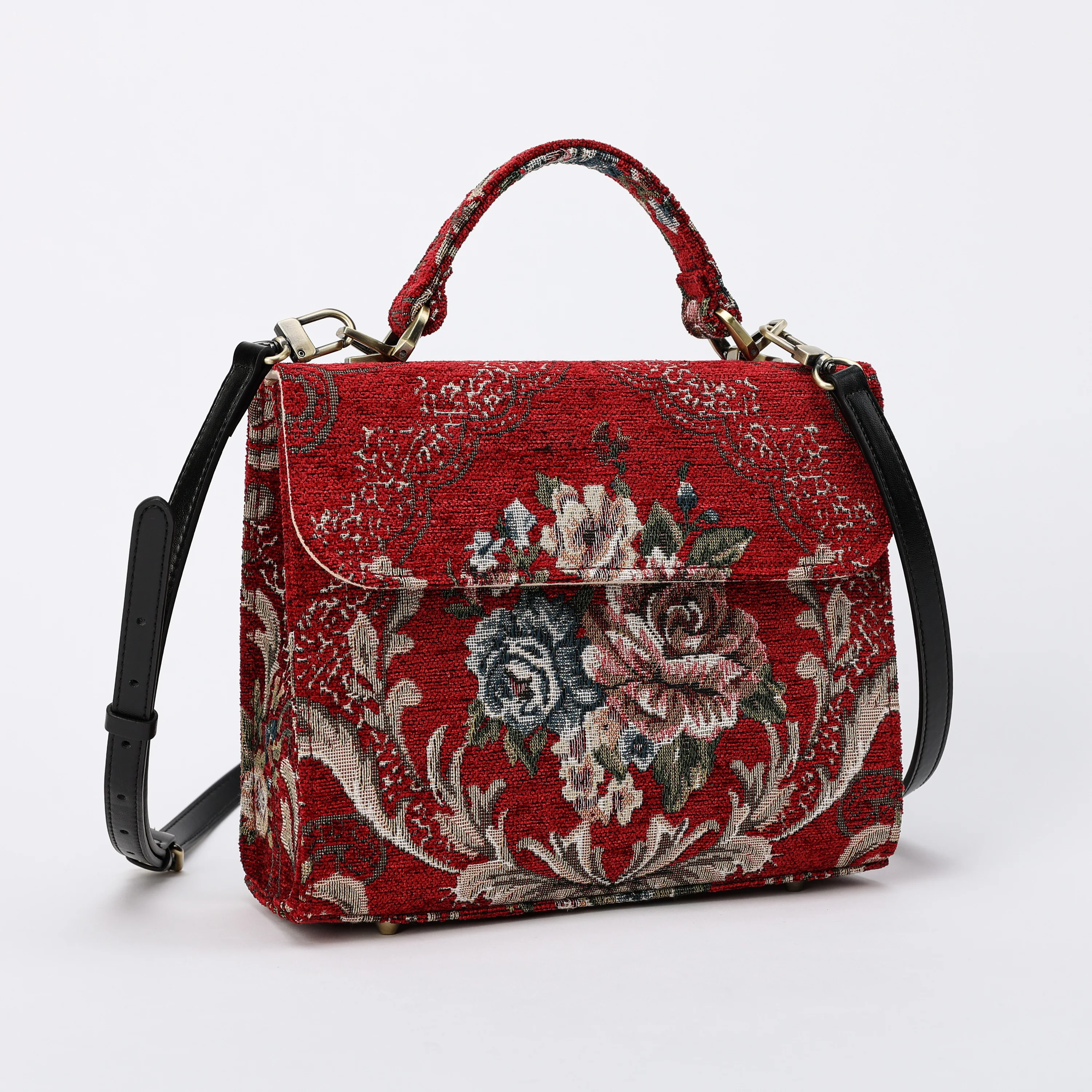 This exquisite satchel is the perfect companion for your daily adventures, whether it’s a workday or a weekend getaway, it has you covered. it's a perfect blend of style and practicality. Spacious interior with zipper and slip pockets, detachable shoulder strap. Sturdy exterior in carpet or velvet, cotton lining. Convenient magnetic flap closure, brass feet for stability.