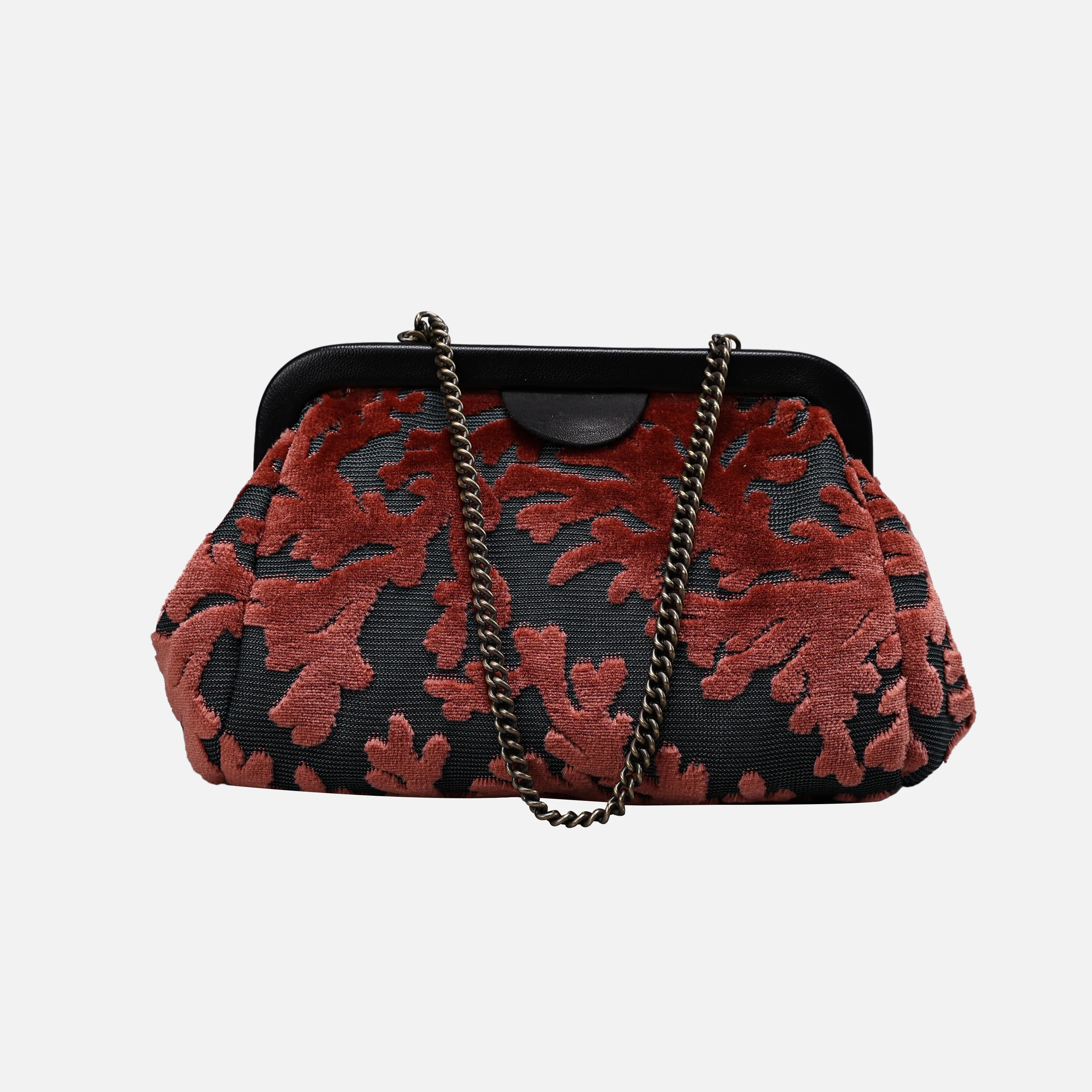 Crafted from luxurious burnout velvet, this clutch is part of our renowned collection that also includes our newly developed satchel. The coordinated design ensures a stylish and cohesive look.